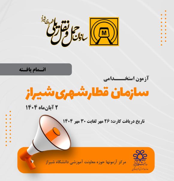 دانشگاه شیراز اقدام به برگزاری آزمون استخدامی جهت تکمیل نیروهای متخصص برای سازمان قطارشهری شیراز مینماید.